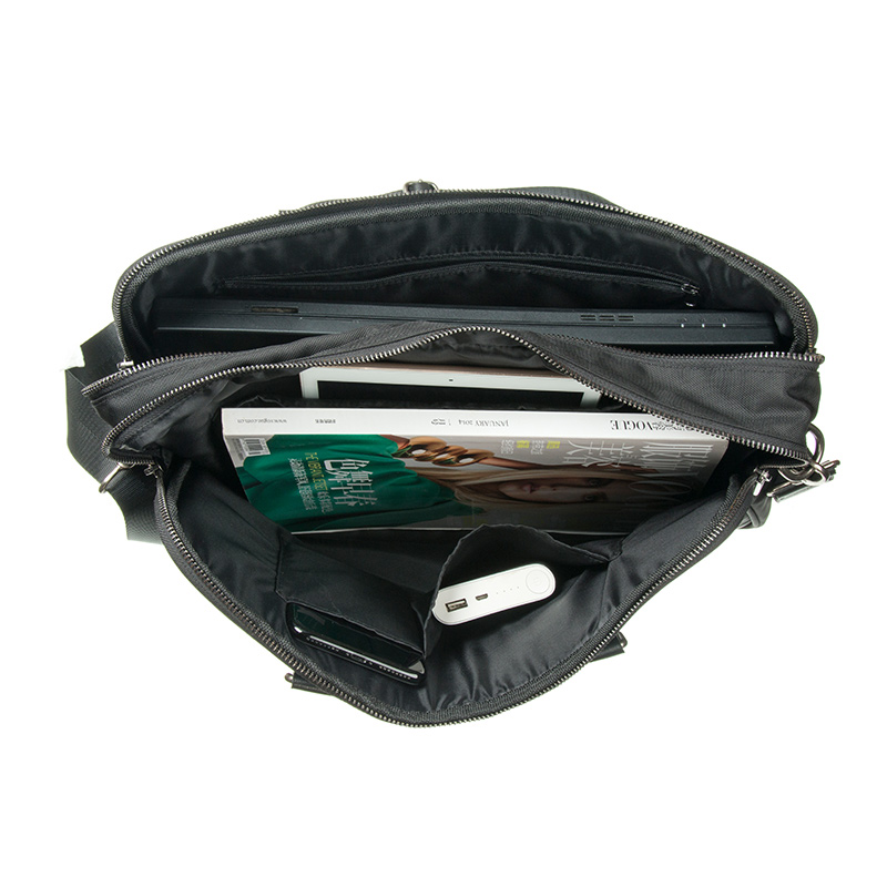The front compartment includes two standard slip pockets designed for smaller items such as notebooks, business cards, and accessories. A dedicated padded tablet sleeve offers additional protection for electronic devices, while the remaining space can accommodate magazines or larger daily essentials. This thoughtful organization allows the bag to function as both a professional briefcase and a practical man bag laptop solution for everyday work needs.