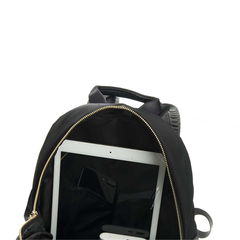 Esta mochila para iPad está confeccionada en nailon 230D repelente al agua, con una superficie lisa y fácil de limpiar. En el panel frontal, cuenta con un bolsillo interior oculto con cremallera, estratégicamente disimulado bajo un borde doblado, dejando a la vista únicamente el tirador para facilitar su uso. Este ingenioso diseño no solo evita la entrada de agua en días lluviosos, sino que también realza la estética limpia y minimalista del panel frontal. La combinación de tejido impermeable y una confección impecable garantiza que la mochila se mantenga pulcra y presentable en cualquier entorno.