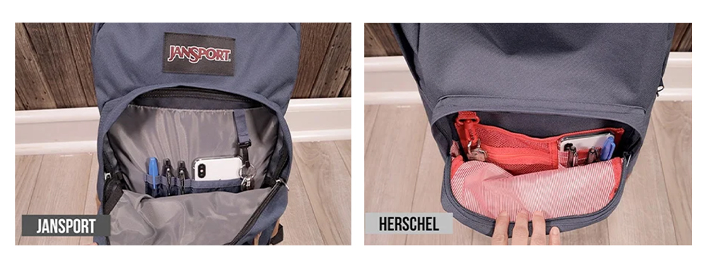 In terms of size, overall, JanSport backpacks are larger than most Herschel backpacks. Below is a detailed size comparison chart for the best-selling models: