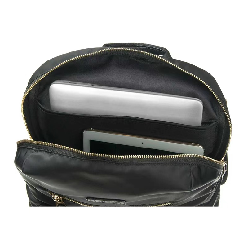 Esta mochila de negocios combina nailon impermeable 230D con un diseño de tan solo 0,37 kg para una mayor comodidad en tus desplazamientos. El compartimento para portátil, con amortiguación de vibraciones, utiliza un forro de algodón T/C de doble capa y está acolchado con espuma de polietileno de alta densidad para evitar arañazos e impactos, a la vez que permite un acceso rápido a los documentos en su espacio organizado de 9 litros durante los viajes de negocios.