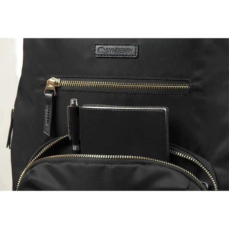 Una mochila de trabajo eficaz combina una estética profesional con separadores funcionales. Nuestro sistema de compartimentos multicapa permite guardar portátiles de 13 pulgadas con doble acolchado, manteniendo un peso ligero de tan solo 0,37 kg. Además del portátil, hay espacio para todo: iPad, libreta, gafas de sol, el libro que lees en el tren, incluso la camiseta que te pones antes de volver a casa; todo perfectamente organizado. Los herrajes, que superan la prueba de niebla salina de 48 horas, se mantienen libres de óxido y conservan su brillo original.