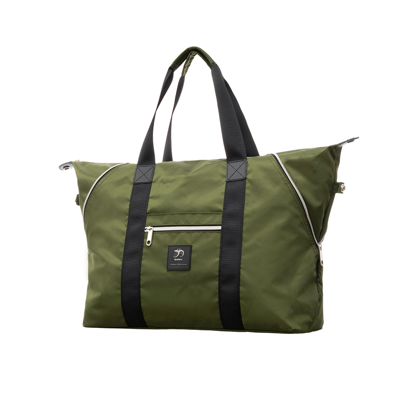 This olive green tote bag is crafted from high-end waterproof nylon, combining lightweight construction with a textured, premium look. Designed for versatility, it can function as a classic tote bag or expand into a large foldable duffle bag, meeting the demands of travel, work, or everyday use.