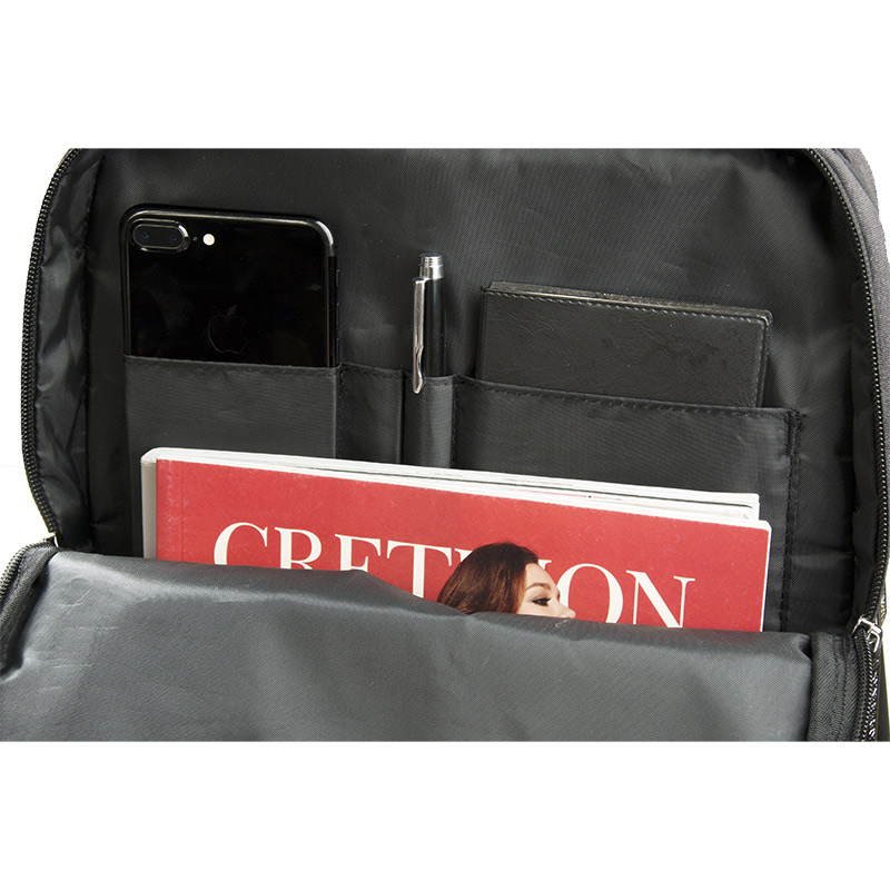 The second main compartment is designed for traditional office essentials, including one business card slot, two pen holders, and a slip pocket for notepads. The remaining open space allows flexible storage for documents or personal items. Balanced, structured, and thoughtfully organized, this backpack redefines what a streamlined computer backpack and men’s work backpack can offer in today’s professional environment.