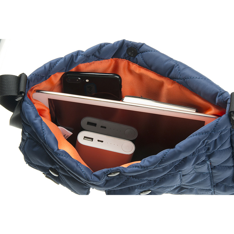 Combining the casual practicality of a messenger bag with the unique padded aesthetic of a quilted crossbody bag, this style provides brands with a distinctive product that stands out in the market while remaining functional and customizable.