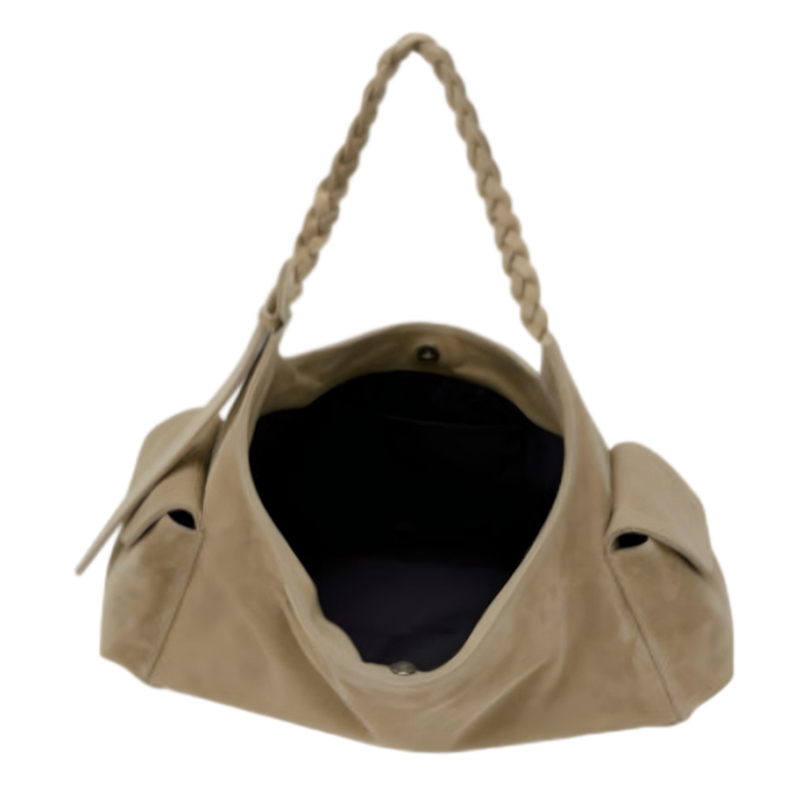 1.87 lbCrafted with soft, high-quality imitation suede, this tote bag with pockets is designed to keep your essentials organized and accessible. The bag's dumpling shape offers a roomy interior, perfect for storing items like a small makeup bag, umbrella, or even a light jacket. On each side, you'll find a buckle bag pocket, ideal for stowing your phone, keys, or other frequently used items.
