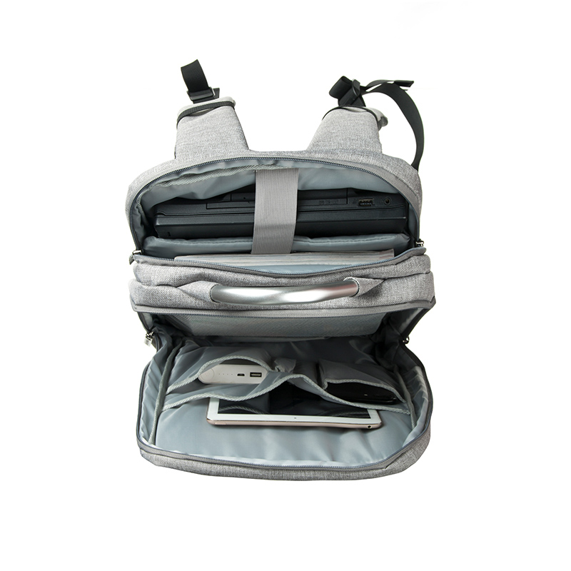 The second main compartment, located closest to the back panel, is exclusively designed as a laptop protection zone. The highlight is the integrated Lycra-coated soft PVC shockproof air cushion pad, which is waterproof, eco-friendly, and highly impact-resistant. This enhanced cushioning system protects your device from accidental bumps and pressure, making it an excellent choice as a business backpack for professionals who carry valuable equipment daily.