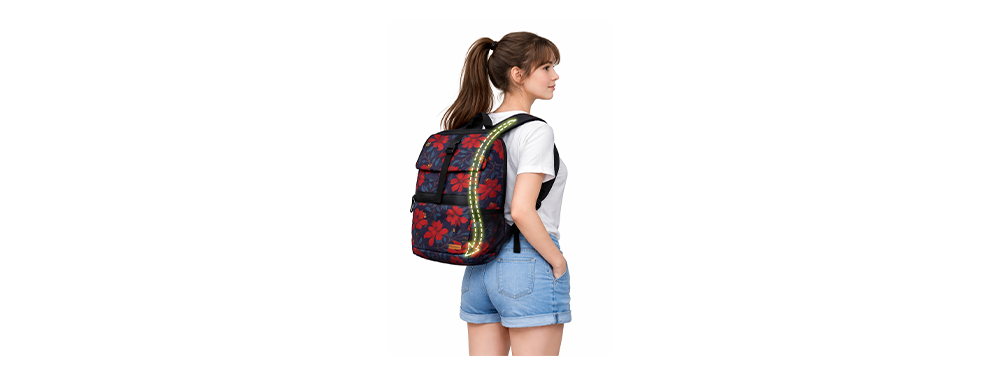 Considering that high school students may walk home in the dark after evening study sessions, the front, sides, and shoulder straps of the backpack should be equipped with reflective materials at least 20 mm wide. This is an important feature for ensuring safety during nighttime travel.